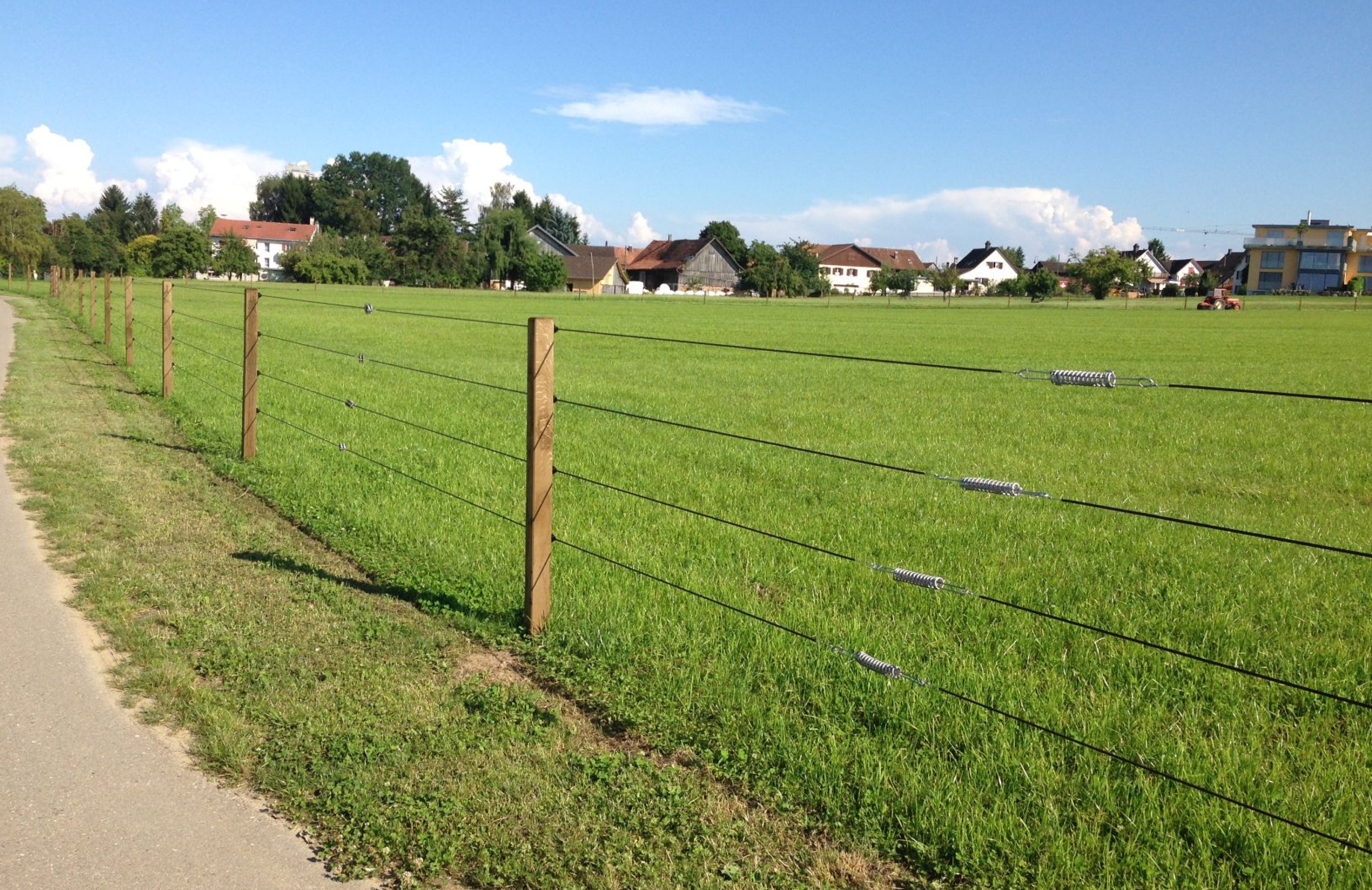 Der Equifencezaun ist ein speziell für Pferde entwickelter permanent Zaun. Equifence ist ein elastisches Kunststoffkabel mit galvanisiertem Kern. Der 3mm dicke Kunststoffmantel schützt das Pferd vor dem Zink und Aluminiumkern, dadurch ist das Verletzungsrisiko minimal. Dieser robuste Pferdezaun hält in Kombination mit dem empfohlenen Zubehör und der professionellen Montage bis zu 25 Jahren.