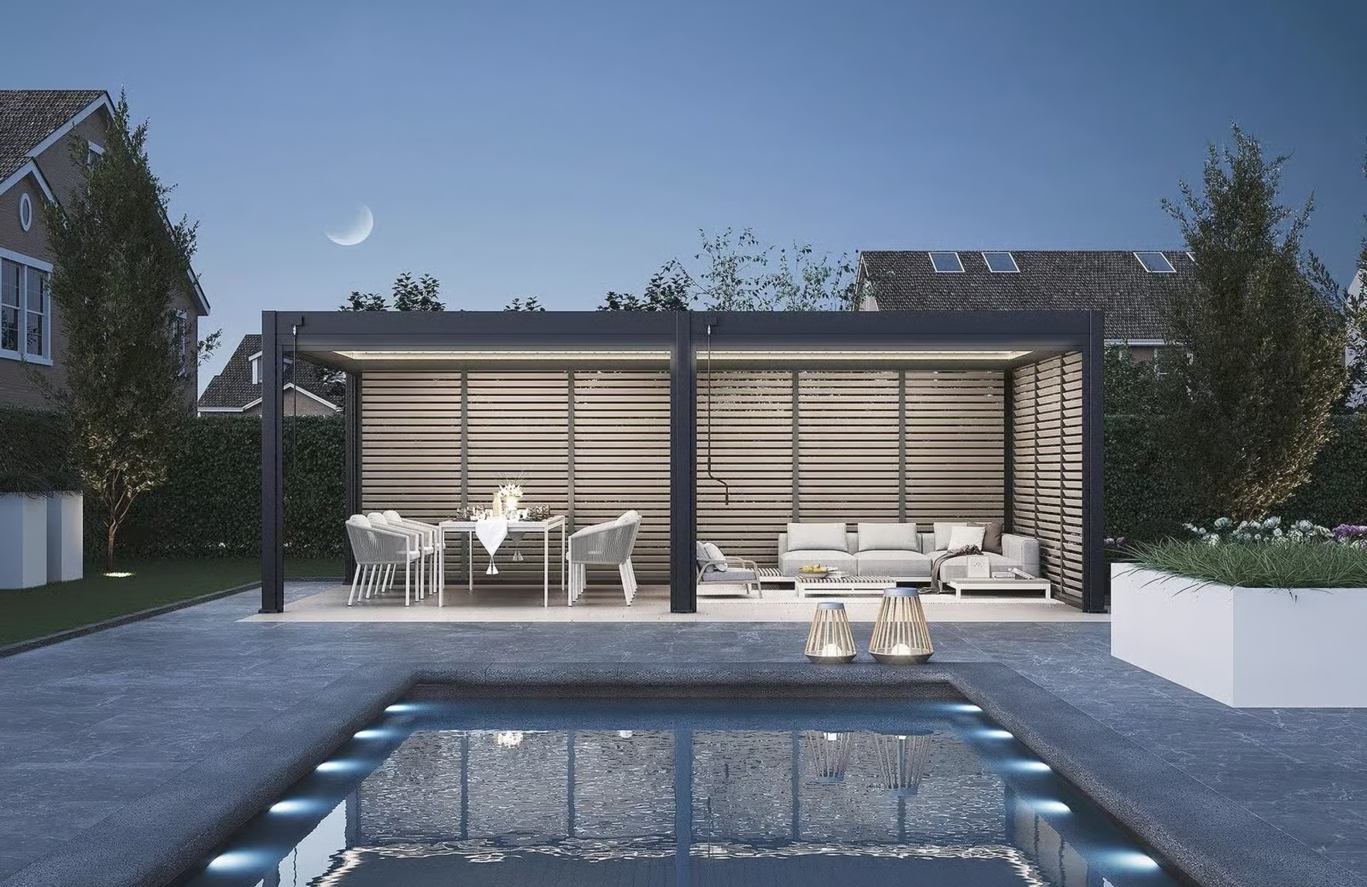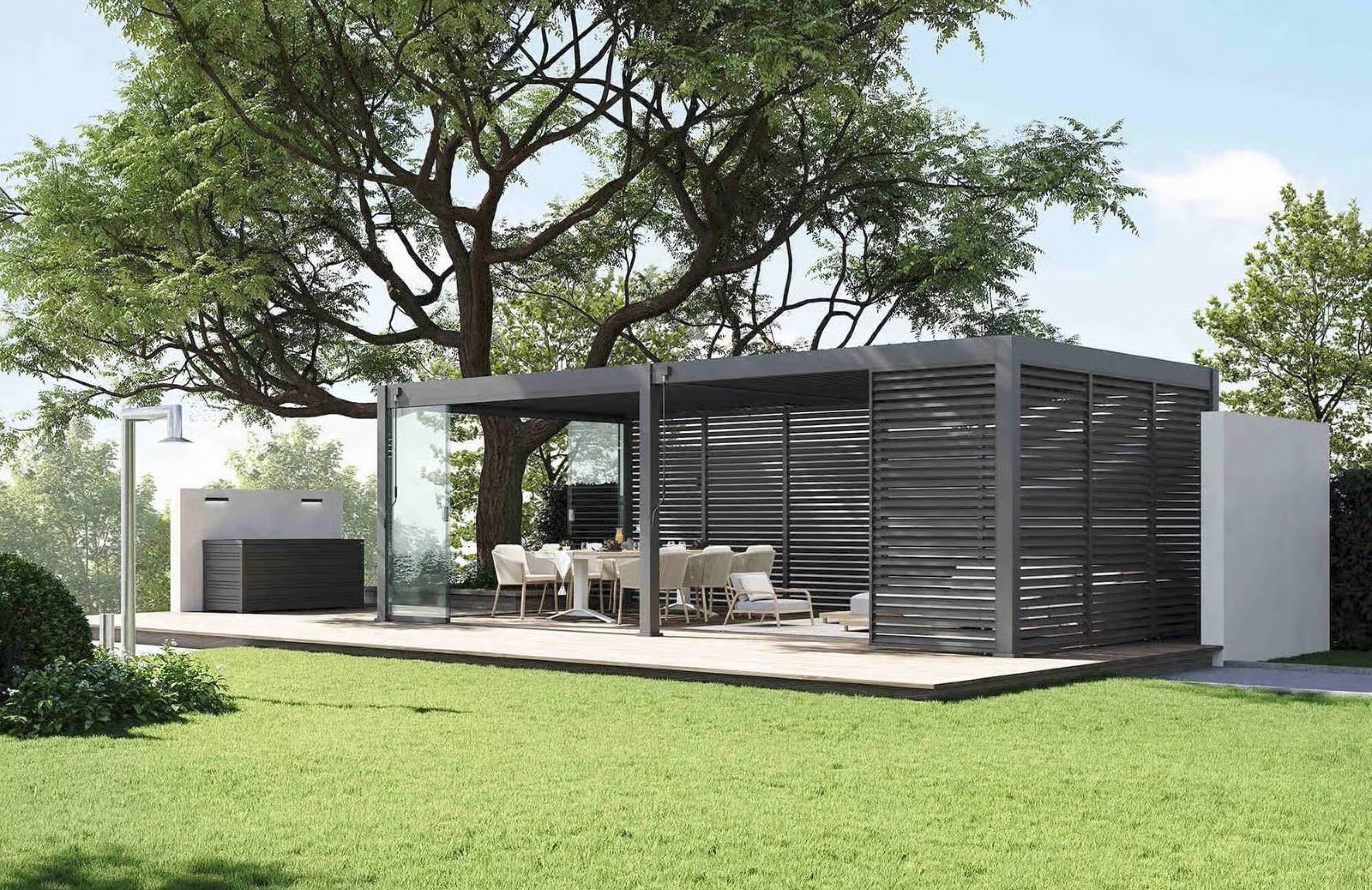 Gestalten Sie Ihr Aussenbereich zur Ihrer Oase und geniessen Sie das Pergola-feeling bei jedem Wetter.