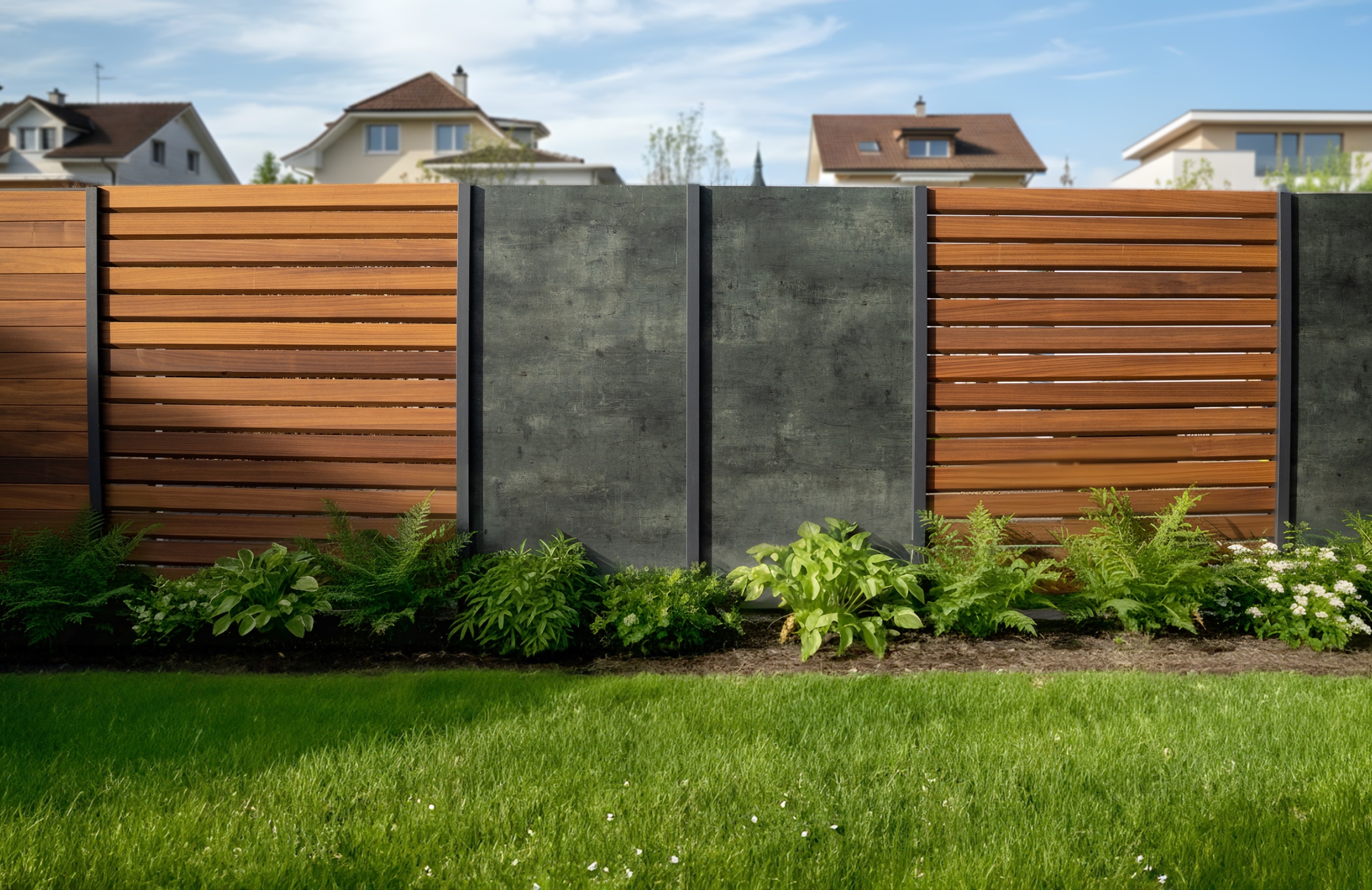 Einfrieden, Abgrenzen, Abschirmen, Repräsentieren; Betonzäune sind Der Thermoholz-Sichtschutz bringt natürliche Wärme und Charakter in Ihren Garten.Durch die spezielle Wärmebehandlung erhält das Holz seine satte, edle Farbgebung und wird besonders formstabil ganz ohne chemische Zusätze.Wählen Sie aus verschiedenen Lamellenformen und natürlichen Farbtönen und gestalten Sie Ihren Sichtschutz ganz nach Ihrem Stil.Thermoholz lässt sich zudem ideal mit Aluminium-Elementen oder anderen Materialien kombinieren.So entsteht eine Lösung, die Privatsphäre schafft und optisch richtig etwas hergibt – modern, hochwertig und zeitlos zugleich.