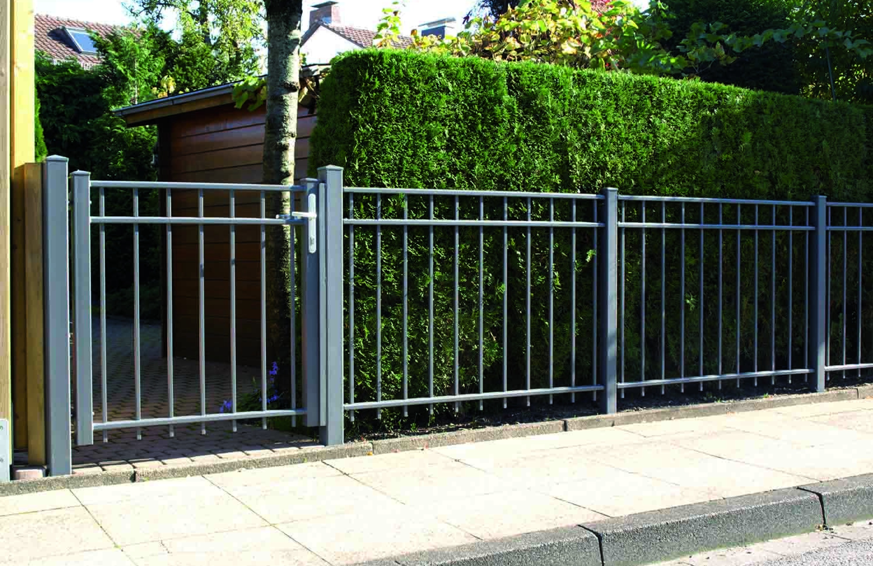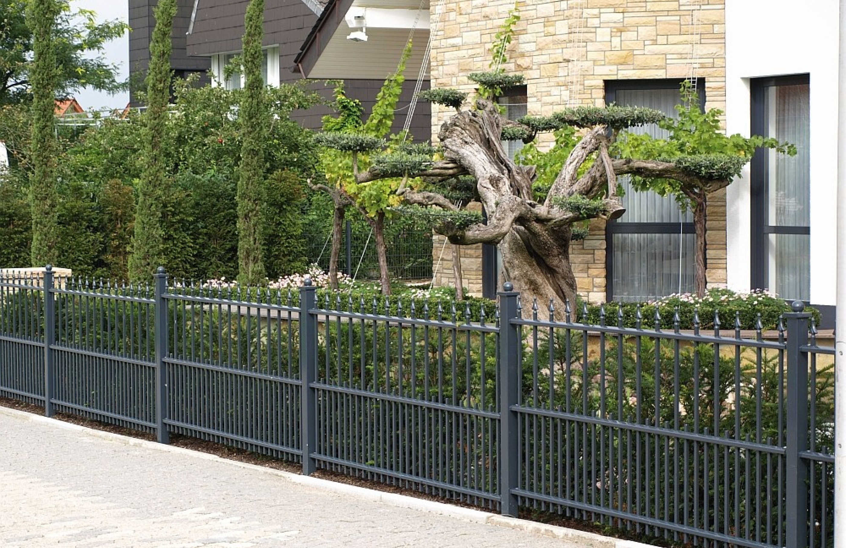 Exklusives Design, hochwertig verarbeitet. Stilzäune werden aus hochwertigen Stahlprofilen gefertigt, feuerverzinkt und nach Ihren Wünschen pulverbeschichtet. Sie sind repräsentativ, stilvoll und äusserst stabil. Der Stilzaun wird generell auf Mass angefertigt und ist nach Wunsch aus unzähligen Varianten auswählbar, damit sich ein optimales Erscheinungsbild ergibt. Passende Toranlagen, manuell oder elektrisch betrieben, runden das Stilzaun-Programm ab.