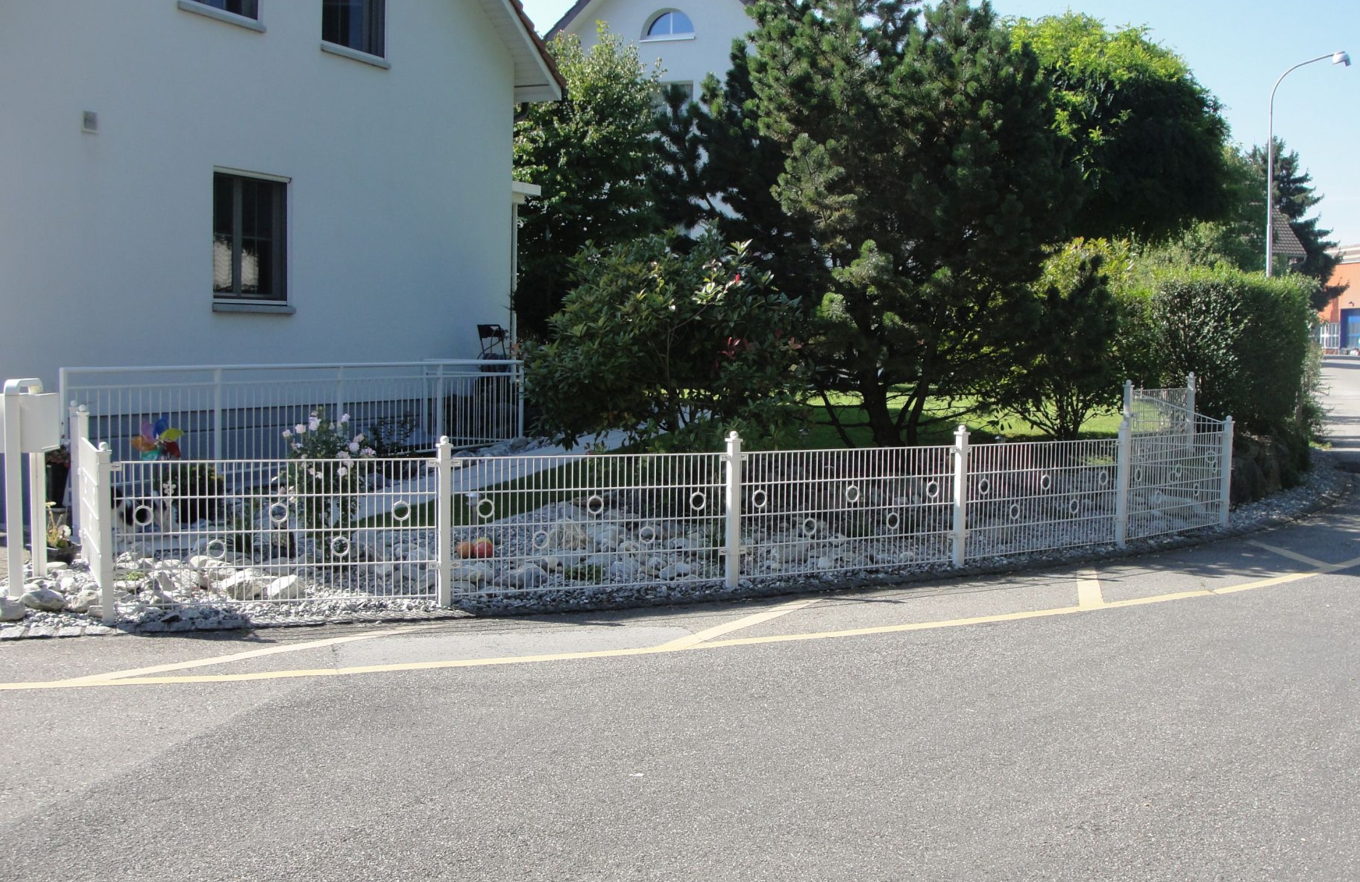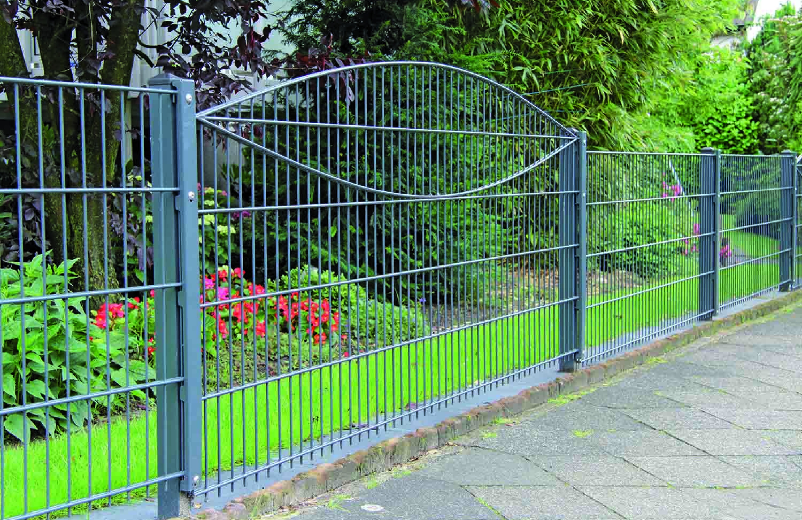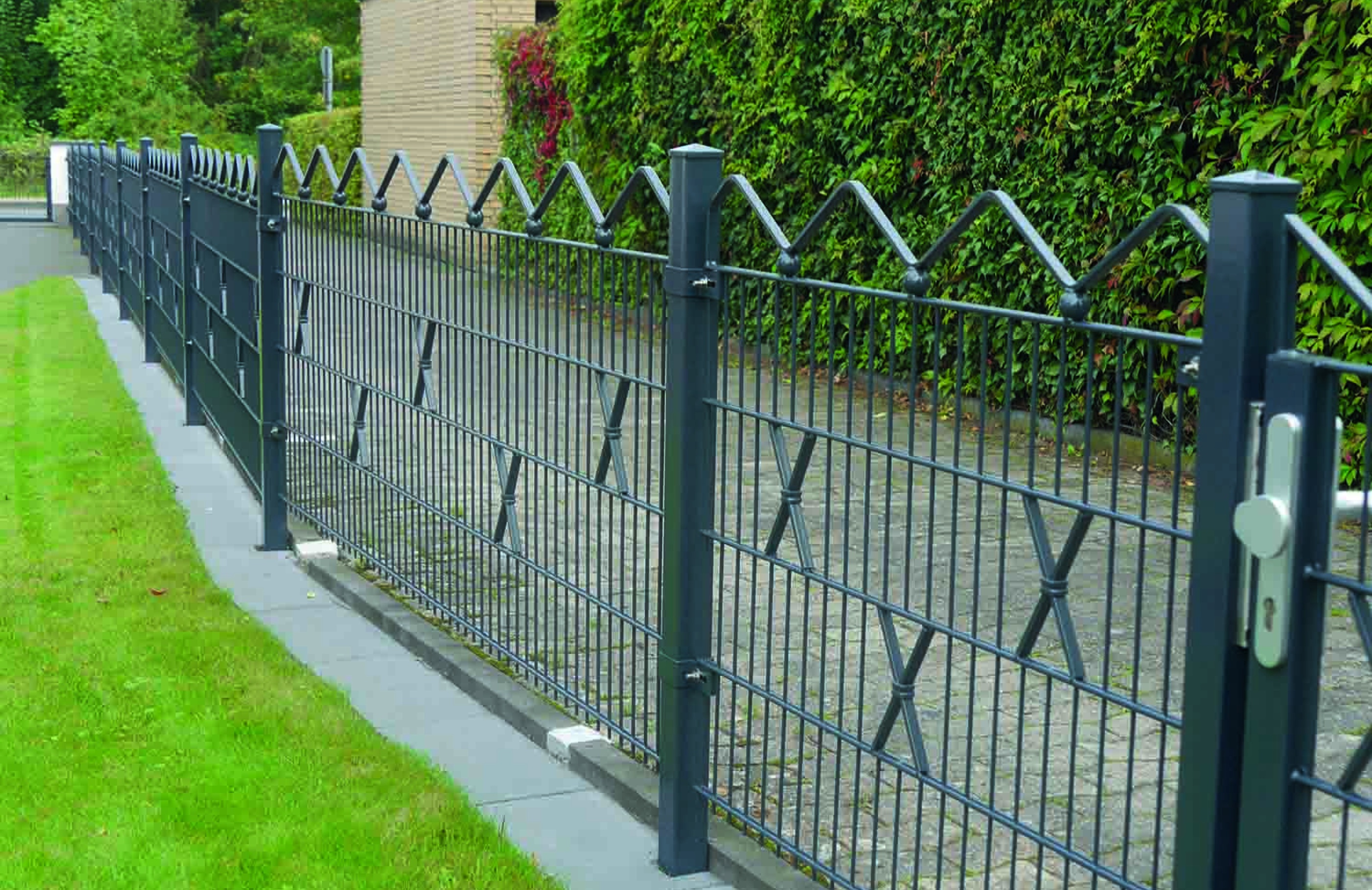 Zum harmonischen Bild von Haus und Garten passt ein Ziergitterzaun zum idyllischen Erscheinungsbild. Der Ziergitterzaun ist ein widerständsfähiger und langlebiger Zaun, der mit seinen filigranen Elementen das individuelle Design passend unterstreicht. Es kann aus verschiedensten Komponenten und Gestaltungsmöglichkeiten nach eigenen Wünschen und Bedürfnissen ausgesucht werden. Die Zäune werden für Sie auf Mass hergestellt und können in verschieden RAL-Farben beschichtet werden. Das passende Tor, sei es manuell oder automatisch, ist für jeden Zaun erhältlich.
