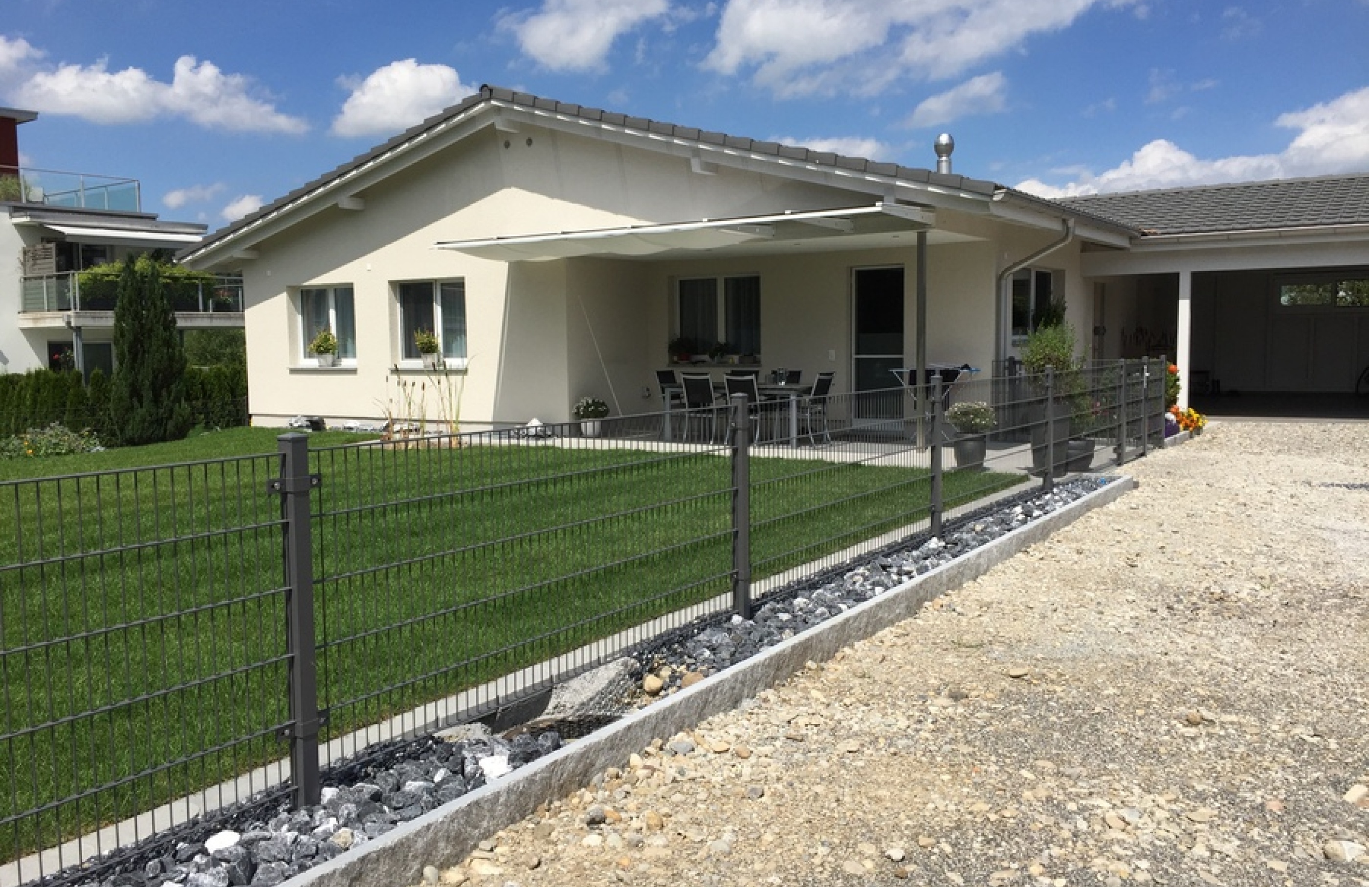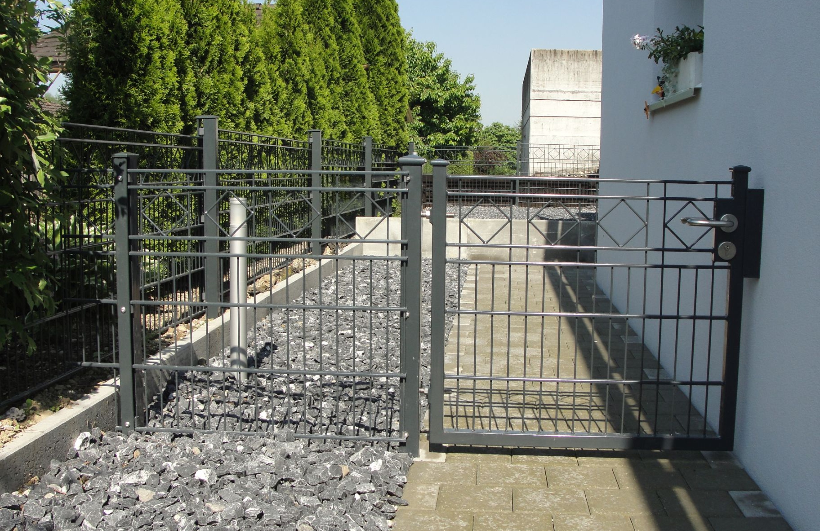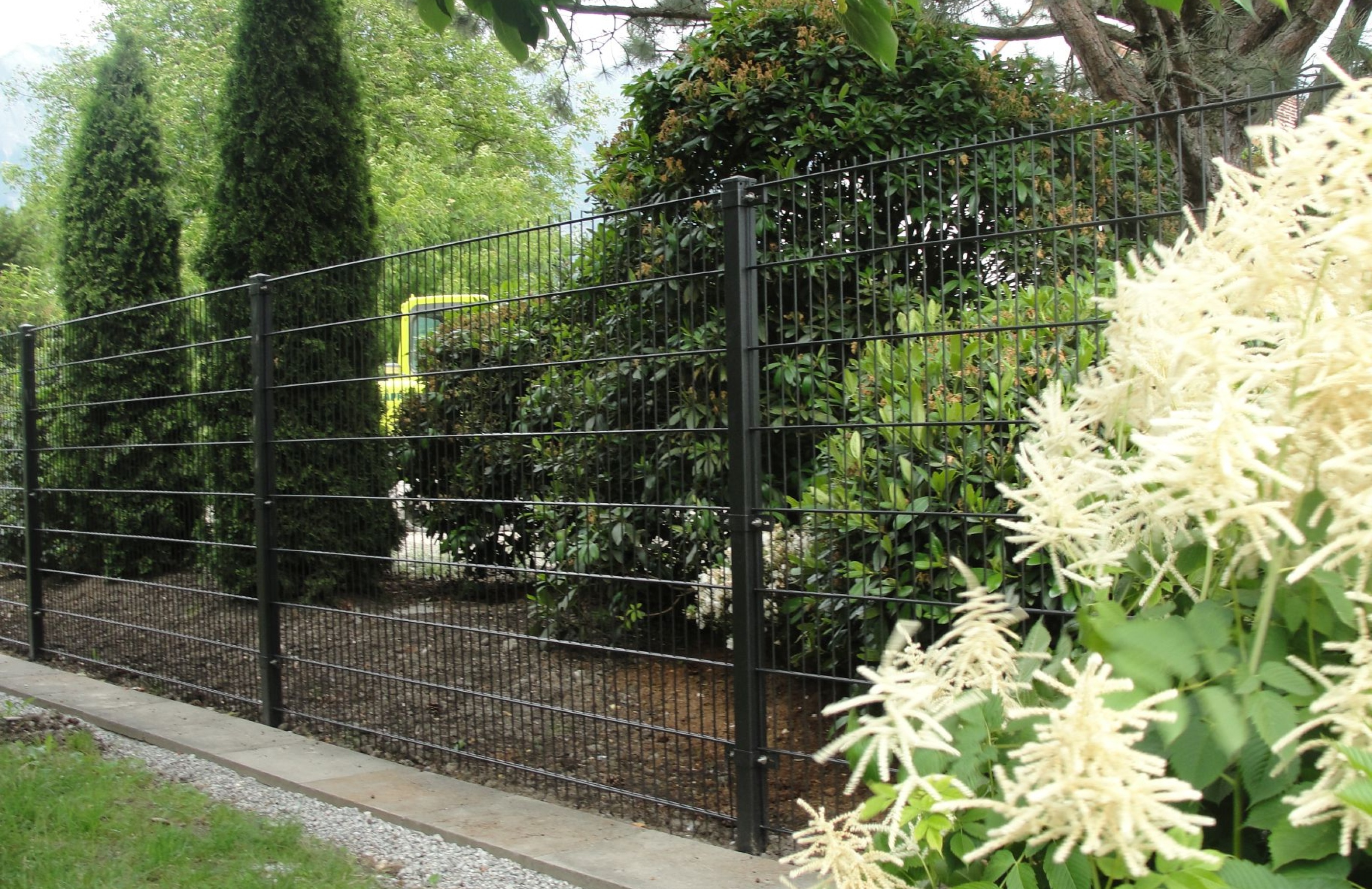 Zum harmonischen Bild von Haus und Garten passt ein Ziergitterzaun zum idyllischen Erscheinungsbild. Der Ziergitterzaun ist ein widerständsfähiger und langlebiger Zaun, der mit seinen filigranen Elementen das individuelle Design passend unterstreicht. Es kann aus verschiedensten Komponenten und Gestaltungsmöglichkeiten nach eigenen Wünschen und Bedürfnissen ausgesucht werden. Die Zäune werden für Sie auf Mass hergestellt und können in verschieden RAL-Farben beschichtet werden. Das passende Tor, sei es manuell oder automatisch, ist für jeden Zaun erhältlich.